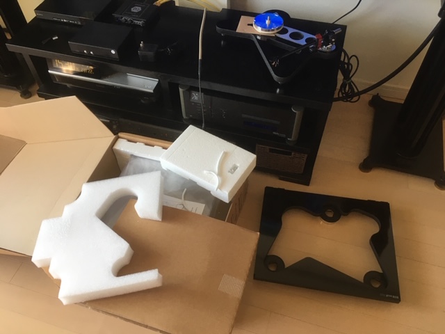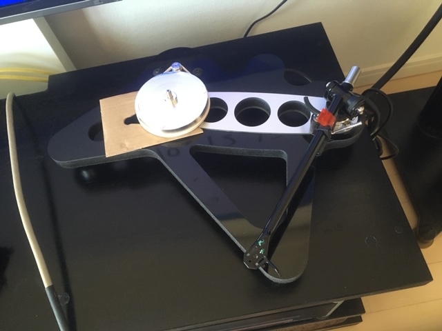 その後フォノイコライザーも交換することになるのですが、トータルで大満足。RP8はフレームを外して設置したほうが音がにじまないので、スケルトンで設置することにしたため、ちょっとエキセントリックな外見ですが見た目はすぐ慣れました。カバーはアクリル板を曲げて自作することに。