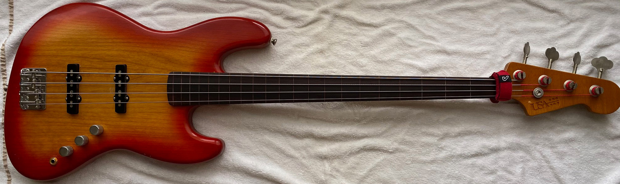 アメリカのビルダーさんにこだわりの材を注文してくれるTCTGPのKatsumiさんにお願いして、2016年にネックとボディを取り寄せて作ったフルオーダーのフレットレス。