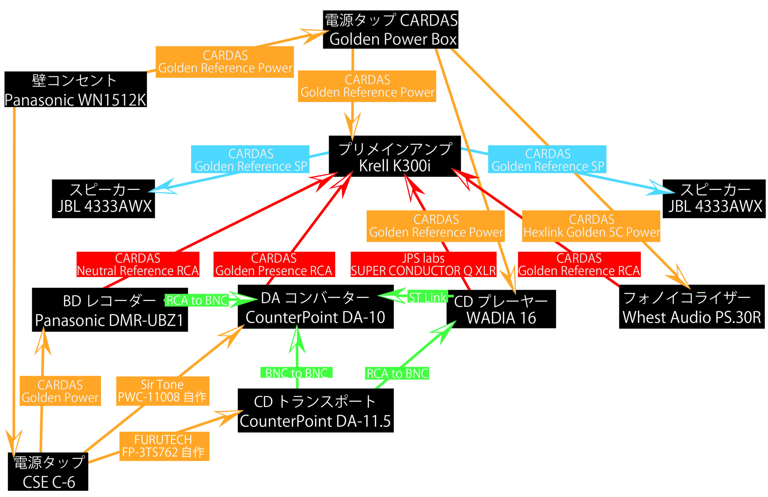 要所だけこだわりにこだわって、結果はCARDAS Golden Referenceシリーズを基本にして、スパイス的に他メーカーで調整という形でまとまってます。